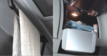 在天龍高頂雙臥駕駛室中.兩個毛巾槊(長度均為42厘米)附著于車頂襯里,在行駛中非常適用于晾干毛巾。