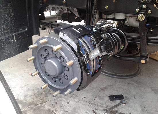 前盤制動:由于剎車系統(tǒng)沒有密封,因此剎車磨損的細削不到于沉積在剎車上,碟式剎車的離心力可以將一切水、灰塵等污染向外拋出,以維持一定的清潔。此外由于碟式剎車零件獨立在外,要比鼓式剎車更易于維修。